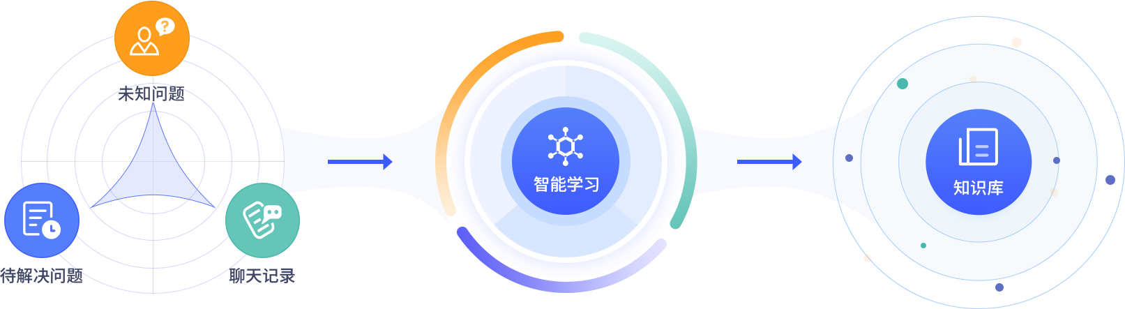 智能学习平台支持知识运营人员一键导入机器人回答不了的问题(未知问题)、客户差评的问题(未解决问题)、聊天记录等数据作为智能学习的数据源